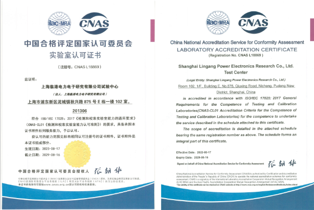 近日,上海臨港電力電子研究有限公司電力電子測試驗(yàn)證中心正式通過中國合格評(píng)定國家認(rèn)可委員會(huì)(CNAS)認(rèn)可,并獲得實(shí)驗(yàn)室認(rèn)可證書。
